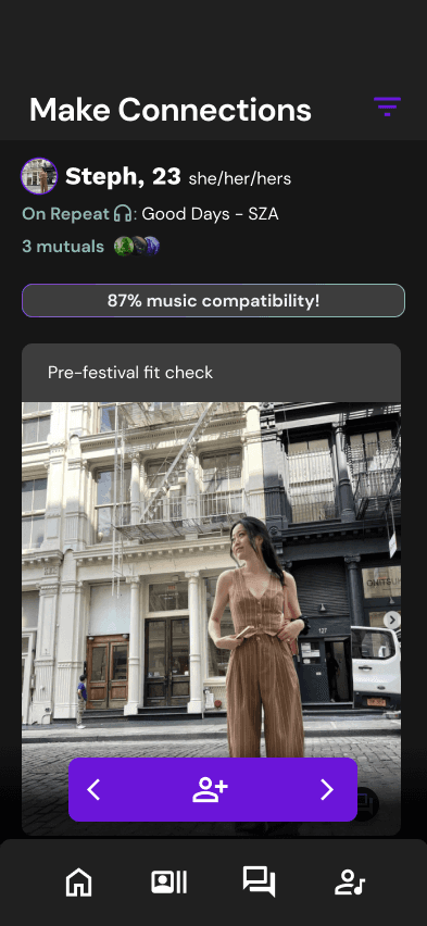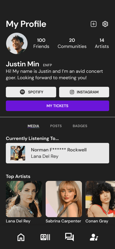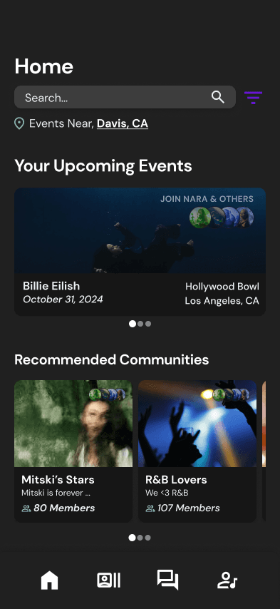 ConcertConnect addresses the disconnection concertgoers feel after missing out on musical experiences. We offer a safe and inviting platform for users to engage, connect, and build community, fostering impactful connections that elevate the live music listening experience.