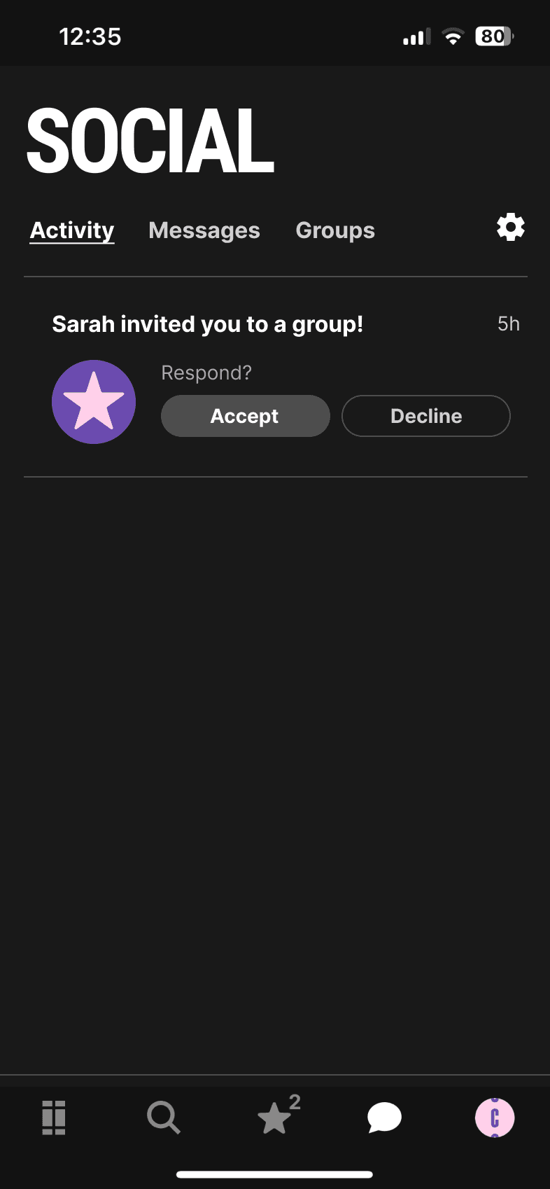 2. Accept invitation to a Group via Activities tab.