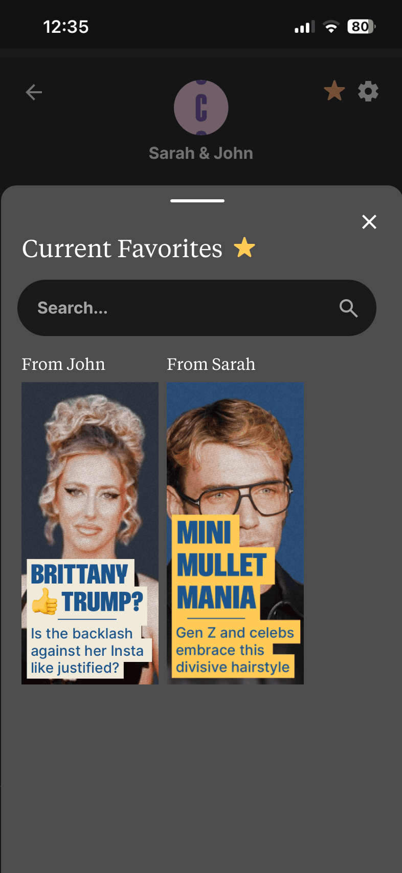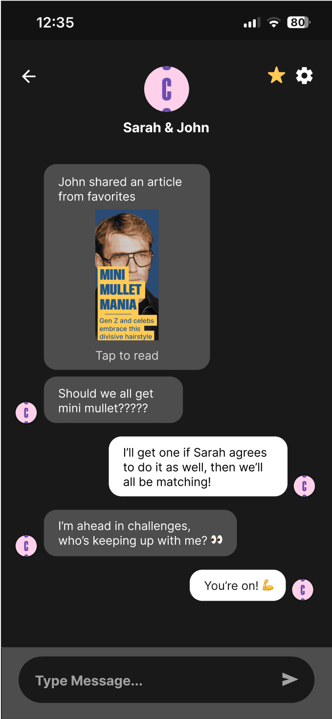 How do we create a more accessible and interactive messaging platform for friend groups? Shades currently has no group messaging feature, making it difficult for friends to communicate and connect with each other. For this part of the new feature, I designed a simple group messaging system and incorporated a “Shared Favorites” function for deeper discussions.