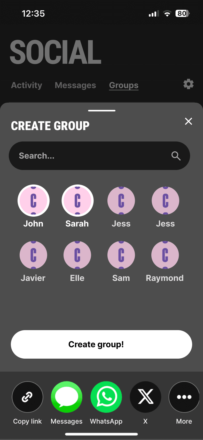 Users preferred to socialize with their friends over strangers. From this feedback, I began to build out the Groups tab, with a feature that allows the user to either: