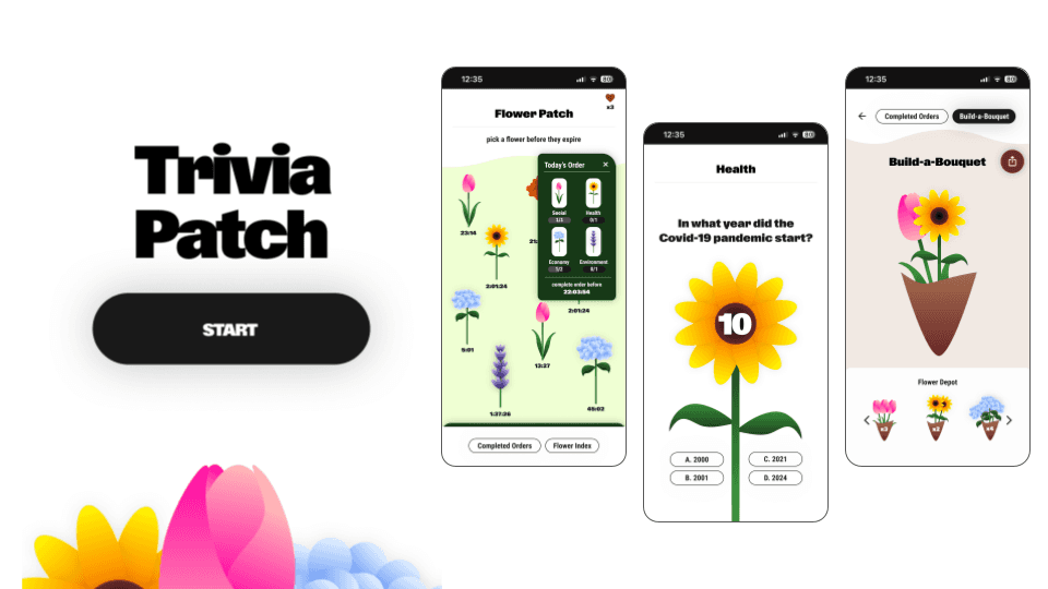 Trivia-based game for the Shades app. Answer categories of questions, collect flowers, and build adorable bouquets to share with loved ones!