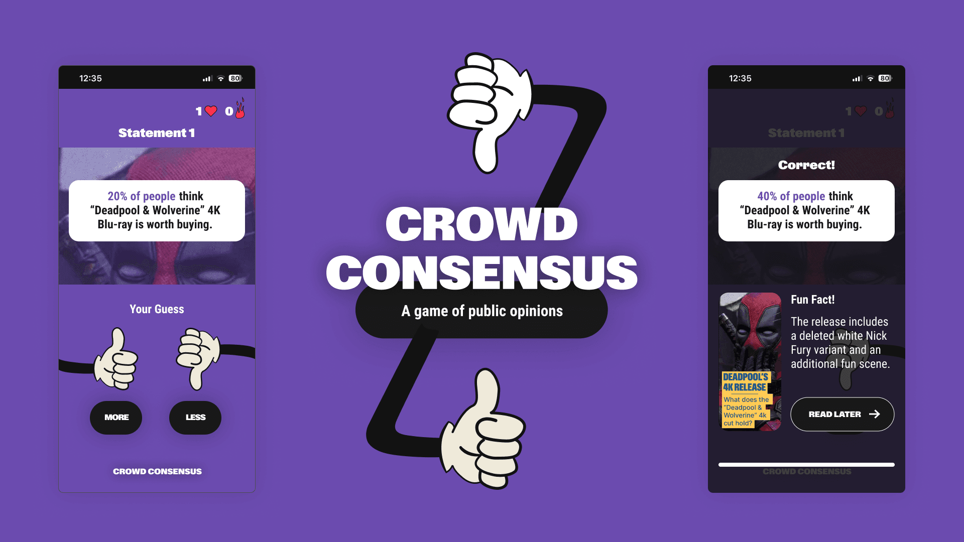 A gamified feature for the Shades app. Do you know numbers? Players test their knowledge on trending Shades polls by answering “higher or lower” questions and learning new fun facts.