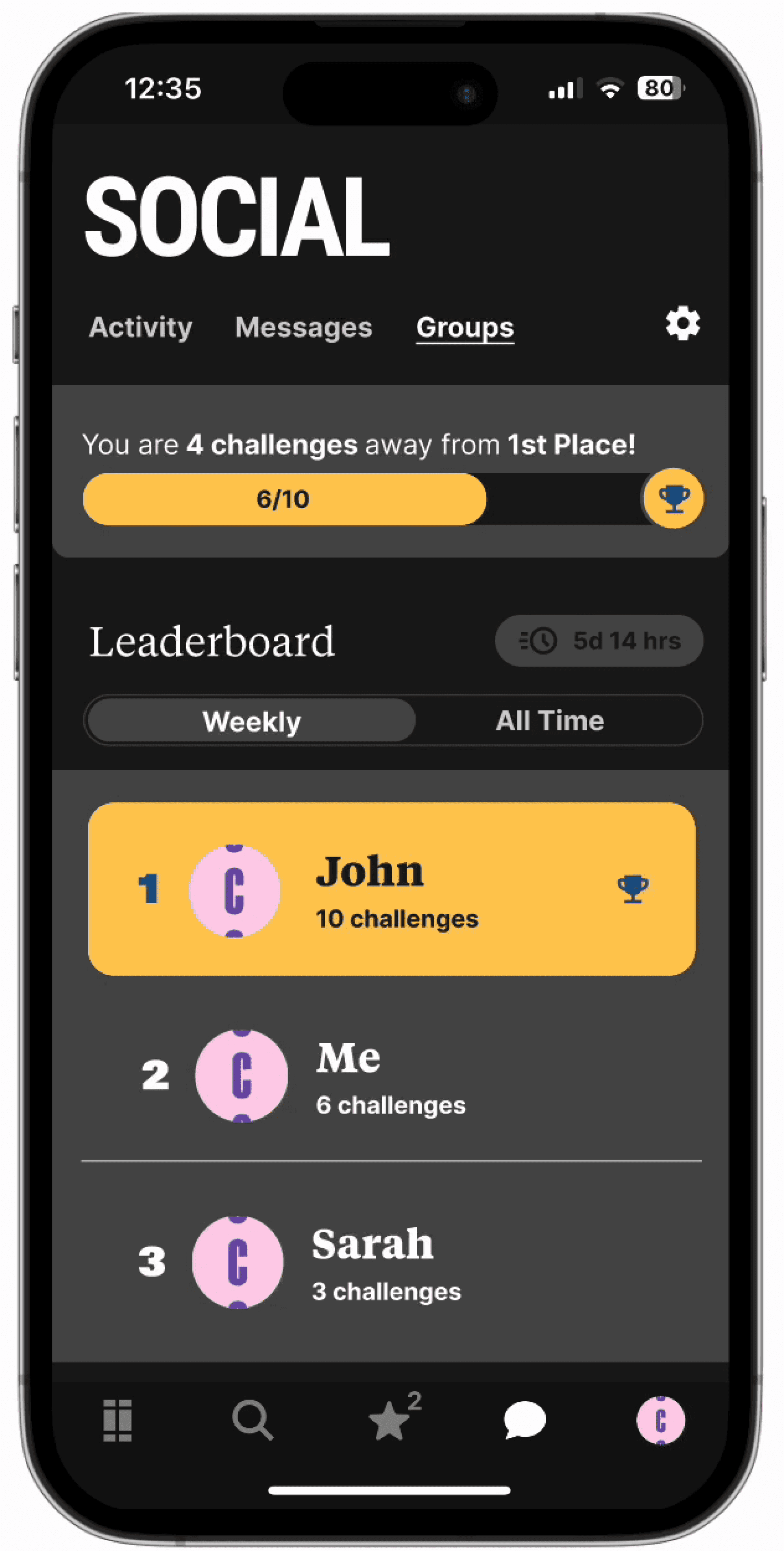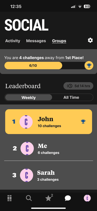 Groups is a way for users to share their experiences with close friends and encourage one other to interact with Shades articles though leaderboard and challenges.